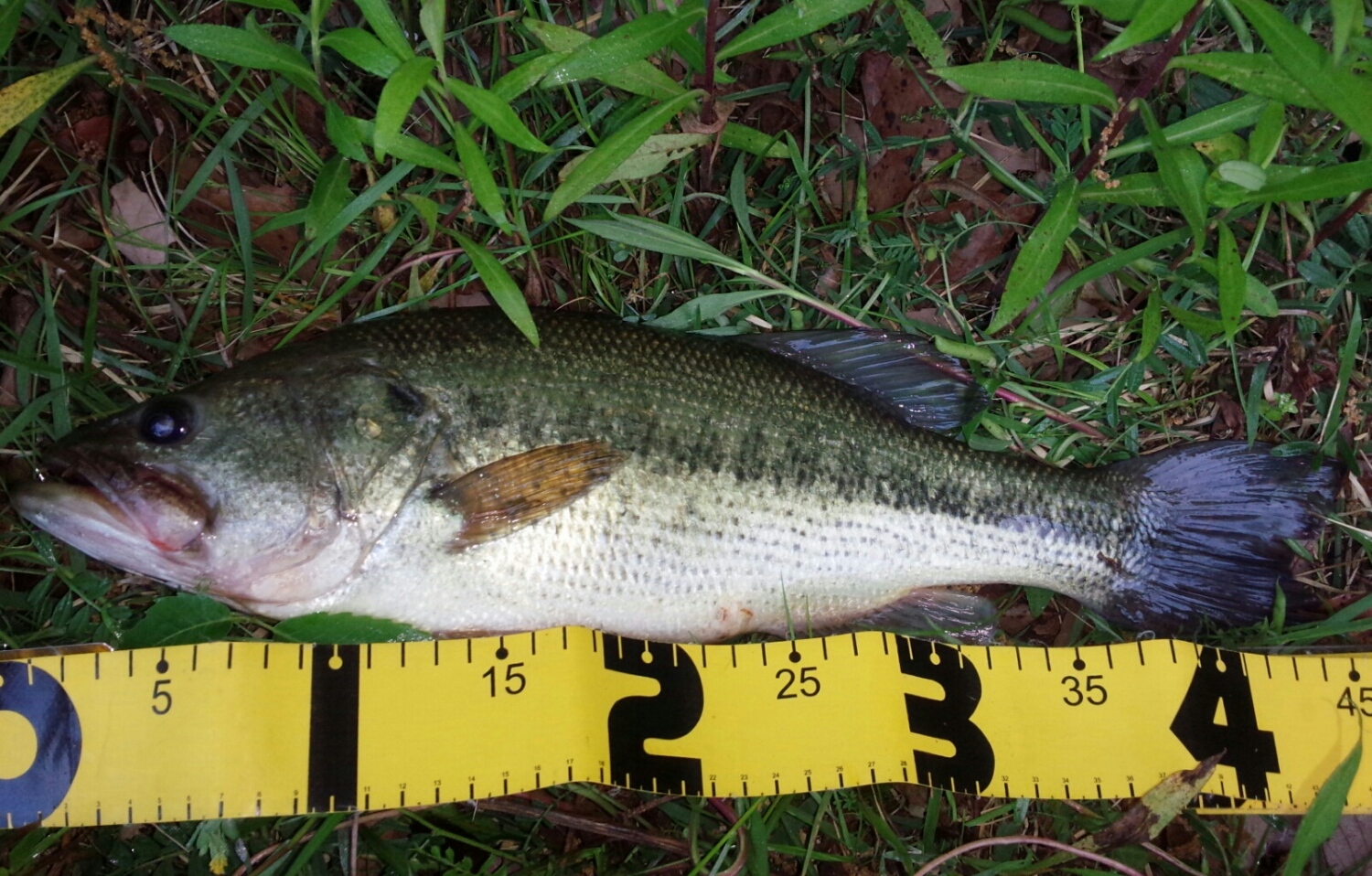 岸際はギルだらけだったので、カットテール4インチをスプリットショットにして、沖からズルズル引いて来たら釣れました。