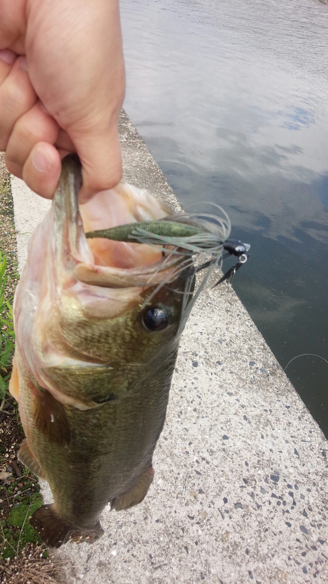 天気も曇りだし、巻物でしょ!、ってことでチャターベイトを結んで、下流域と支流の水路をひたすら釣り歩き。