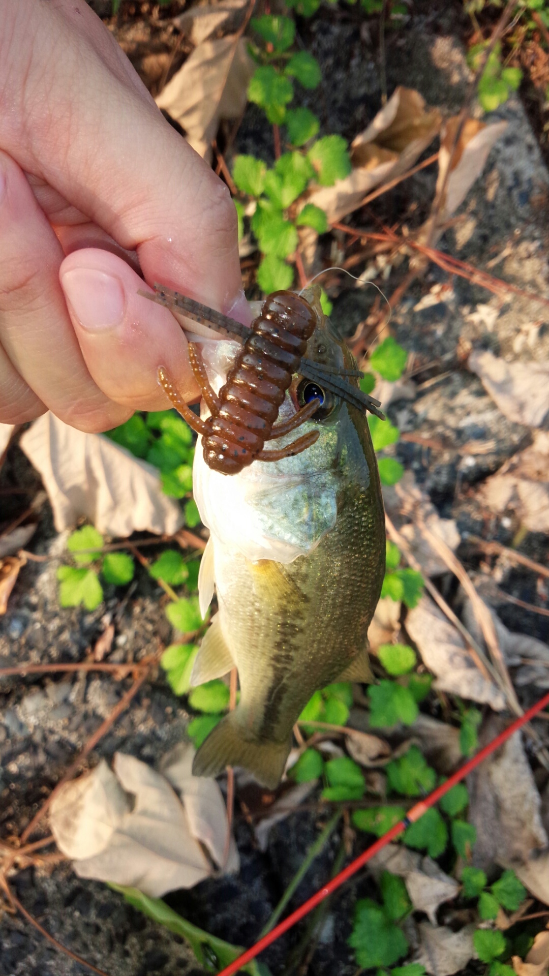 虫系ルアー(写真は青木虫での一匹。他にもトラウト用プラグのタイニーシケイダーでもゲット)