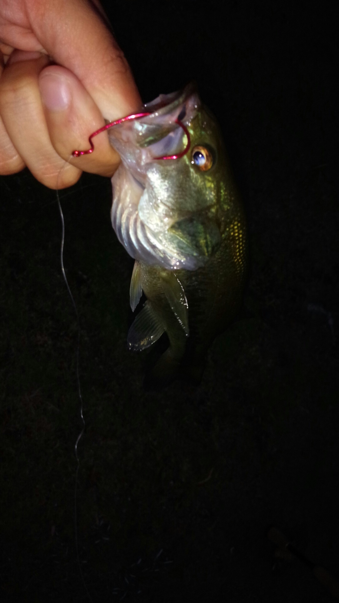 バックスライドセットにして、キャスト→シェイク→放置の繰り返しで探っていくると、ステイ中に弛んでたラインが横走りするアタリ(・∀・)