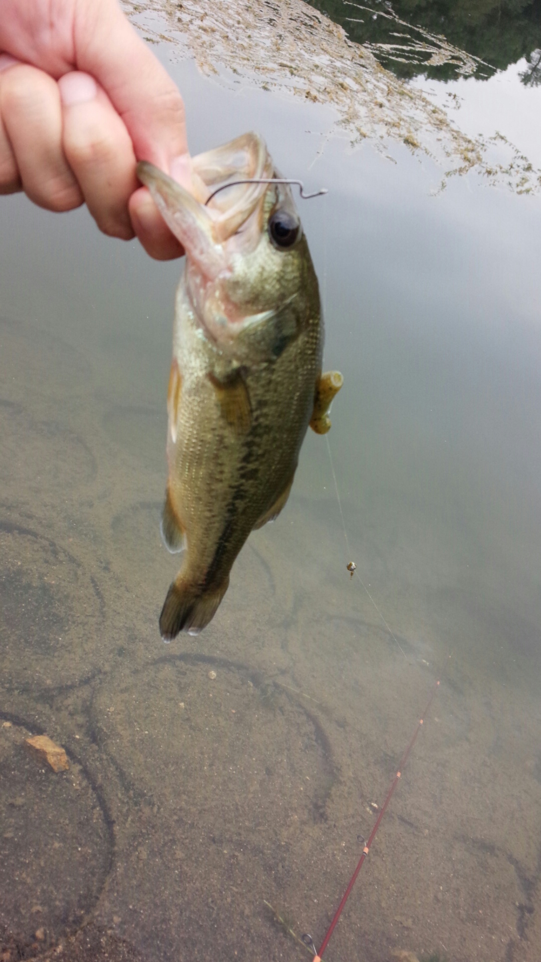 リングワームのスプリットショットリグに変えて、岩がゴツゴツしたところを探るとようやくヒット!
